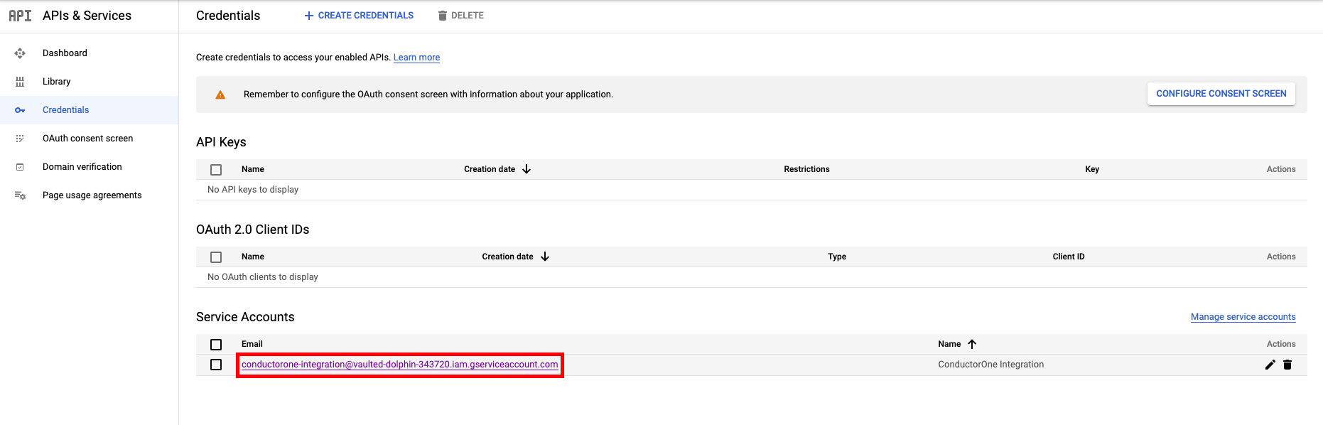 - Service account name: ConductorOne Integration